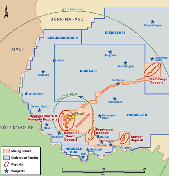 • Endeavour have indicated that an approximate US$36 million exploration program over five years to end 2025 will focus on open pit targets located within 10 kilometres of the existing infrastructure, including Nogbele North, Nogbele South, Fourkoura, Hillside and Korindougou, as well as greenfields targets such as Kafina West